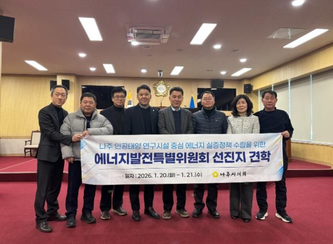 한방통신사 신다은기자 기자 | 나주시의회 에너지발전특별위원회는 인공태양 연구시설 유치 이후의 안정적인 운영 전략과 제도적 과제를 점검하기 위해 지난 1월 20일부터 21일까지 청주시 일원에서 선진지 견학을 실시했다.