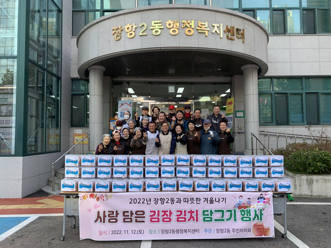 고양특례시 일산동구 장항2동 주민자치회(회장 이상봉)는 지난 11월 12일 장항2동 행정복지센터 앞에서‘사랑담은 김장 김치 담그기 행사’를 열어 어려운 이웃들을 위한 따뜻한 나눔을 실천했다.