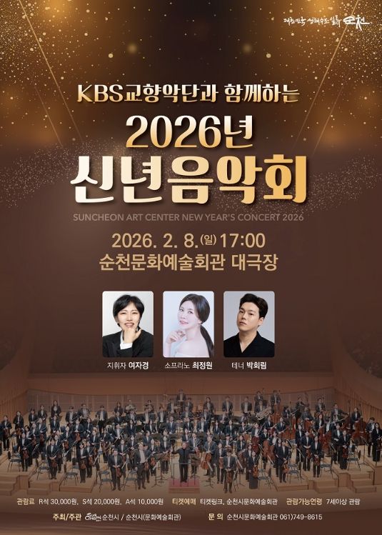 한방통신사 신다은기자 기자 | 순천시는 2026년 새해를 여는 첫 공연으로 대한민국을 대표하는 KBS교향악단 클래식공연을 오는 2월 8일(일) 오후 5시 순천문화예술회관 대극장에서 개최한다고 밝혔다.