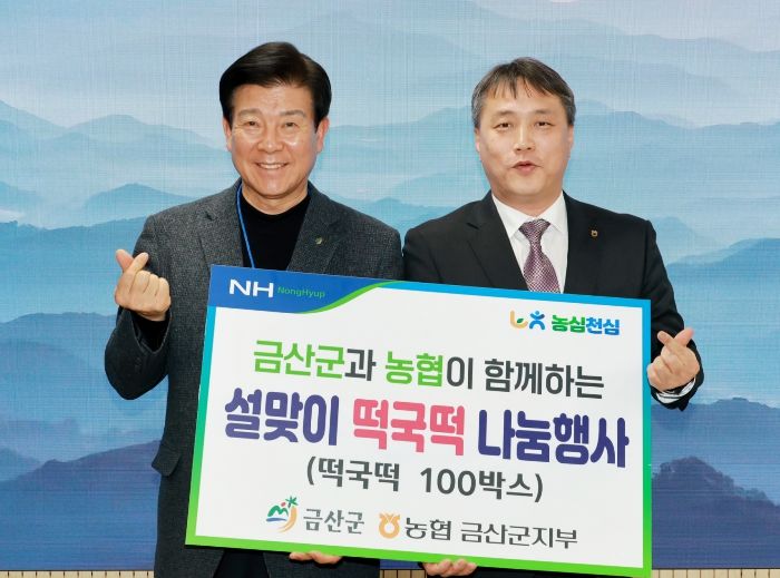 같은 날 농협 금산군지부도 농심천심 운동의 일환으로 설 명절을 맞아 150만 원 상당 떡국떡 2㎏ 100박스를 기탁했다.