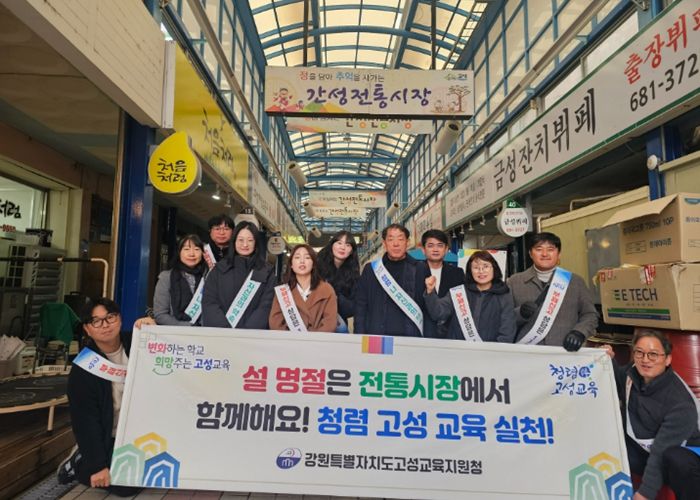 한방통신사 양호선기자 기자 | 고성교육지원청은 설 명절을 앞두고 지역 상권에 활력을 불어넣기 위해 2월 10일(화)과 11일(수) 이틀간 관내 전통시장에서 ‘청렴+(Plus) 나눔 설 명절 전통시장 장보기 캠페인’을 전개한다.