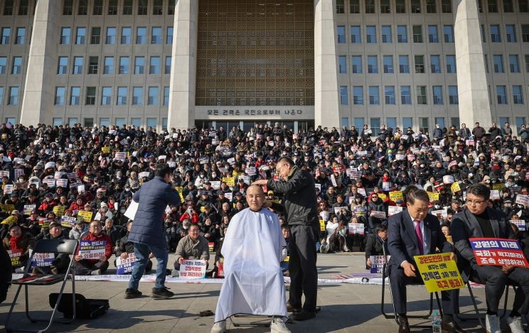 한방통신사 신유철기자 기자 | 김진태 강원특별자치도지사와 김시성 강원특별자치도의회 의장이 이틀째 국회에서 강원특별법 3차 개정안 통과를 촉구하는 천막농성을 이어가고 있는 가운데, 장동혁 국민의힘 대표가 천막농성장을 격려 방문했다.