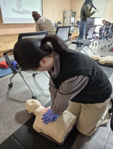 참가자들은 교육용 심폐소생술 모형을 활용해 직접 가슴압박과 AED 사용을 체험하며 실제 응급상황에 대비한 대응 능력을 함양했다.