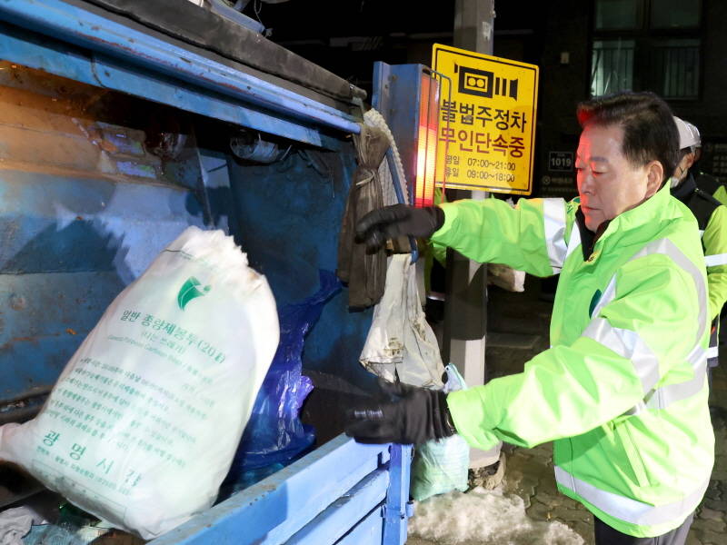 박승원 광명시장은 2일 이른 아침 생활쓰레기 수거 현장에서 2023년 계묘년 새해 첫 업무를 시작했다.