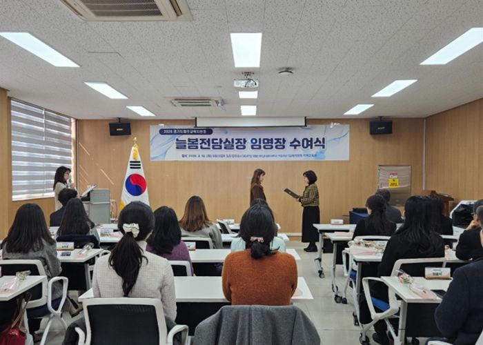 한방통신사 신유철기자 기자 | 파주교육지원청은 2026. 2. 12. 파주교육지원청 별관 201호에서 '2026학년도 늘봄전담실장 임명장 수여식'을 개최하고, 새롭게 선발된 18명의 늘봄전담실장에게 임명장을 수여했다.