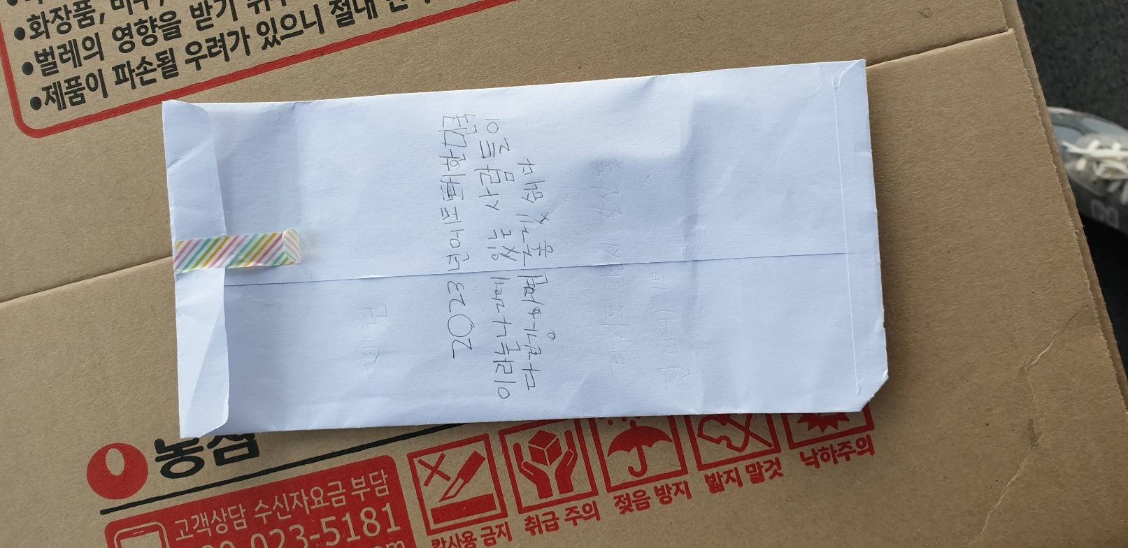 익명의 하얀 봉투 앞뒤면에는 “2023년에도 대한민국이라는 나라에 있는 사람들이 다 건강하면 좋겠습니다. 필요한 사람들을 위해 써 주세요.”라고 손글씨가 적혀 있었다.