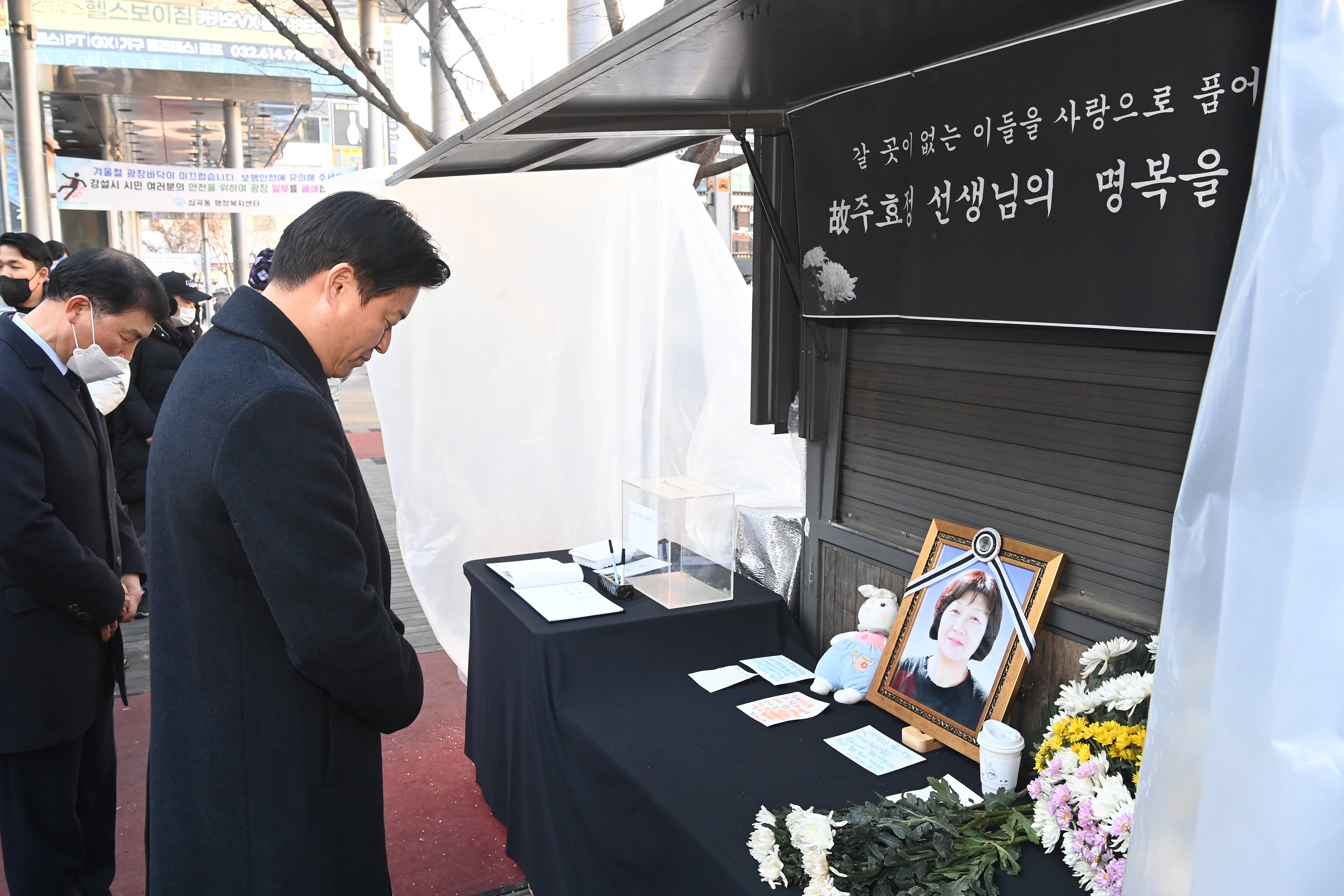 노숙인의 엄마로 알려진 주효정(57) 씨가 최근 세상을 떠나 주변 사람들의 애도 행렬이 이어지는 가운데, 조용익 부천시장이 지난 2일 부천역 마루광장에 마련된 분향소를 직접 찾아와 살폈다.