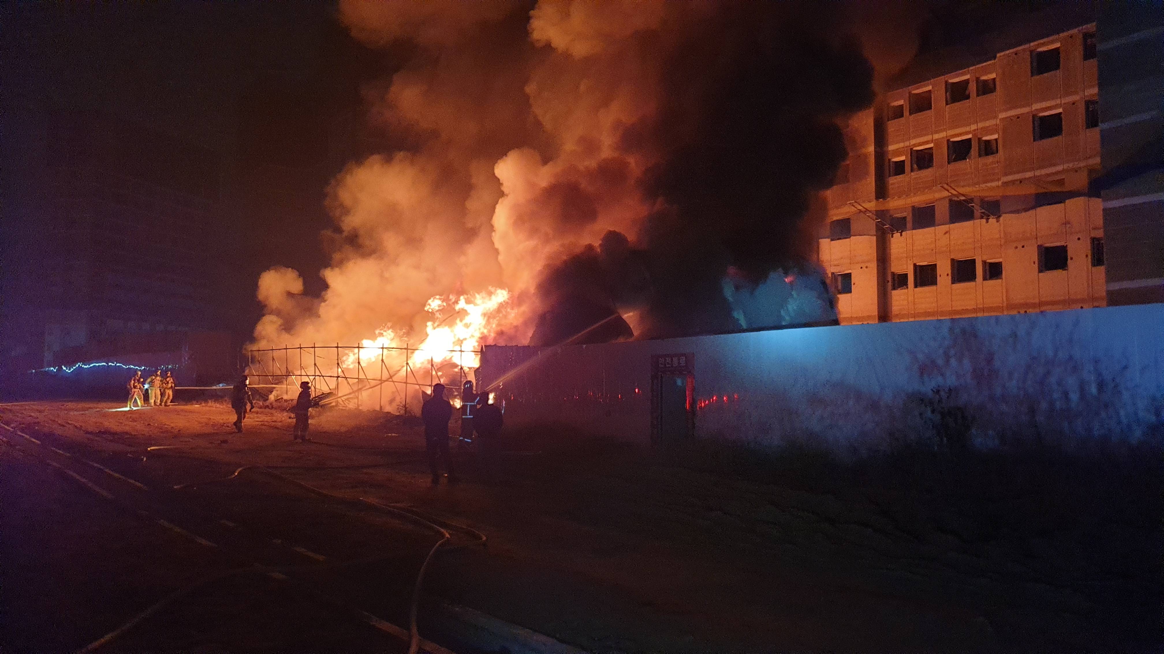 건축 공사장에는 스티로폼 단열재 등 화재 시 다량의 유독가스를 발생시키는 가연성 자재가 많이 사용되고 있다. 특히 대형 건설 현장은 건축자재를 내부 공간에 보관하는 경우가 많아 불이 나면 연소 확대 위험성이 매우 높다.