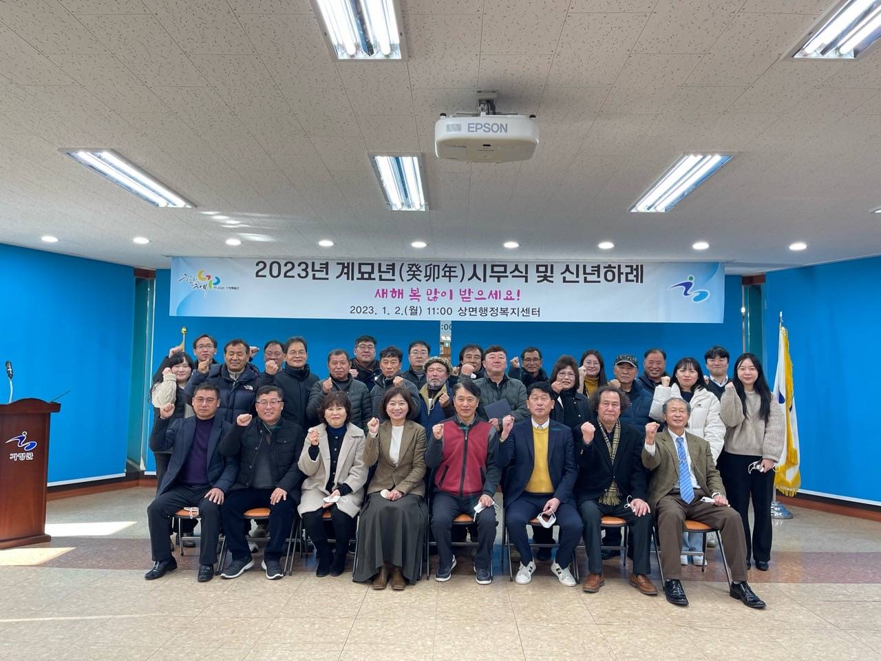 상면행정복지센터(면장 위선경)는 지난 2일 상면사무소 2층 대회의실에서 상면 14개리 이장, 기관·단체장 및 직원 등 30여 명이 참석한 가운데, 계묘년 새해를 맞아 2023년도 시무식을 개최했다.