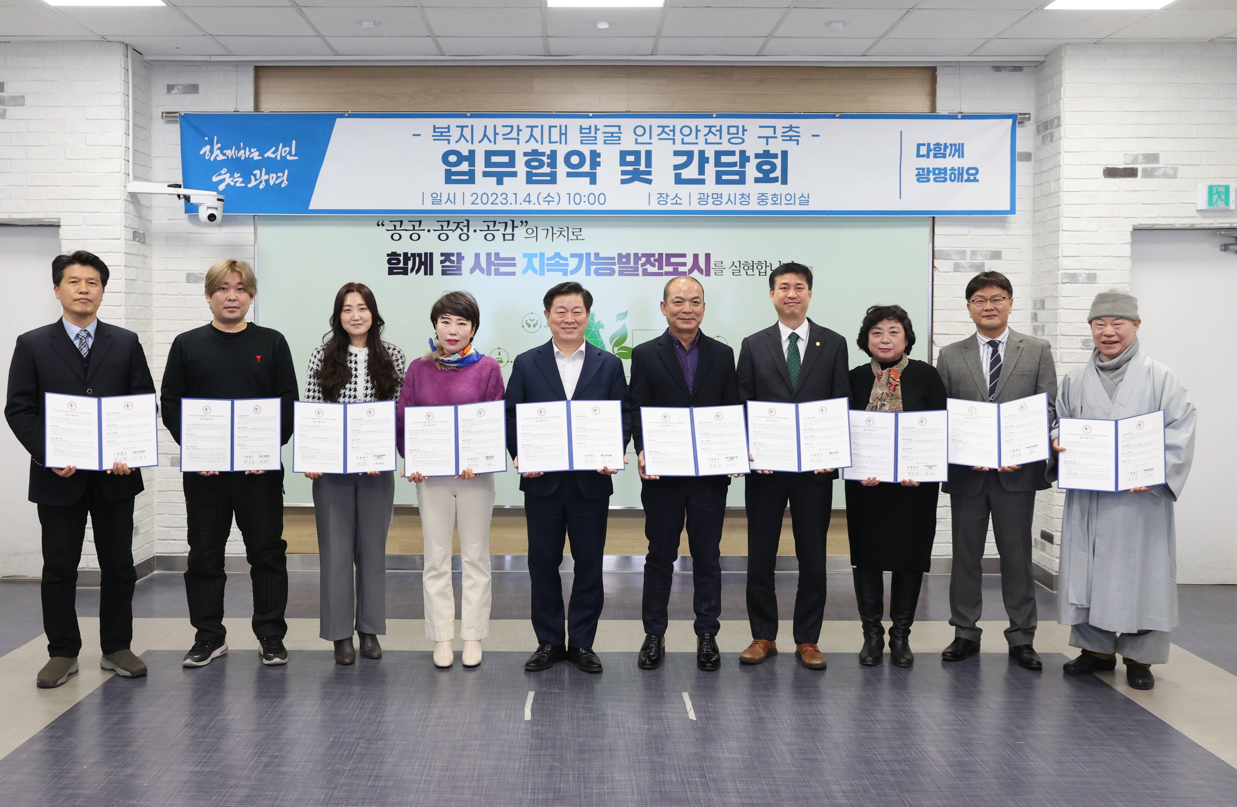 협약 기관·단체는 향후 복지사각지대 발굴 및 복합적인 문제해결을 위해 추진하는 ‘찾아가는 보건복지서비스’ 사업을 적극적으로 지원하며, 광명시는 발굴된 대상자가 적절한 복지서비스를 제공받을 수 있도록 지원한다.