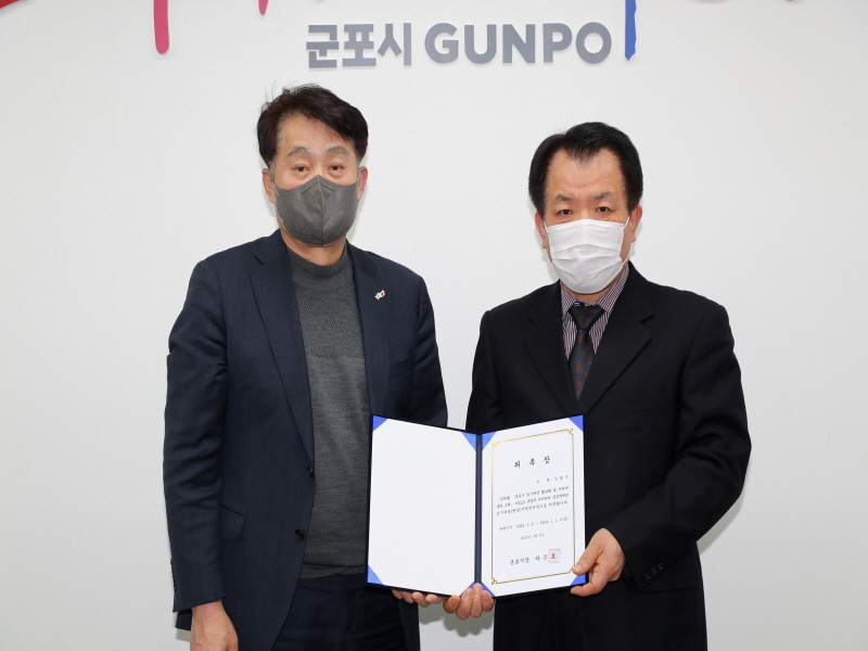 군포시(시장 하은호)는 2일 군포역세권도시재생(현장)지원센터 김철수 센터장에게 위촉장을 전했다.