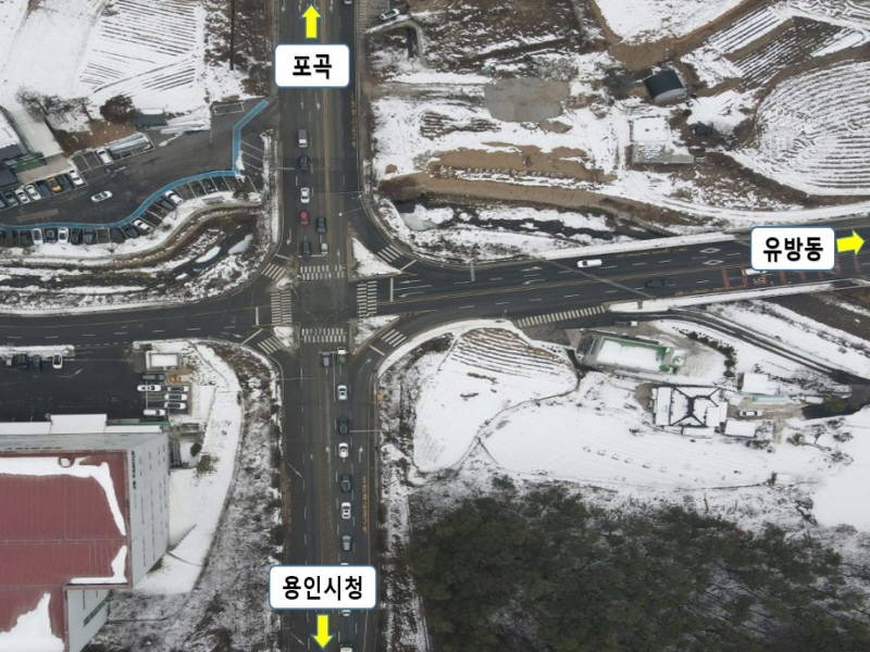 용인특례시(시장 이상일)가 처인구 유방동 775-2번지 일원 유림1교차로의 직진 차로를 2개로 확장해 차량 흐름을 원활하게 개선한다고 10일 밝혔다.