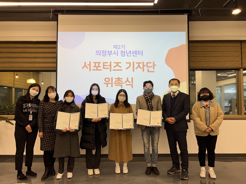 의정부시는 1월 10일 2023년 청년센터 서포터즈 기자단 및 관계 공무원 등 10여 명이 참석한 가운데 ‘제2기 의정부시 청년센터 서포터즈 기자단(이하 기자단) 위촉식’을 개최했다고 밝혔다.
