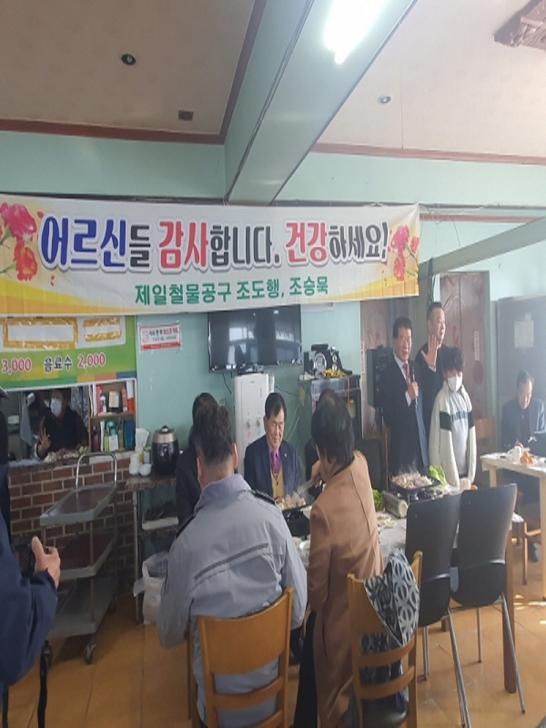 (사)대한노인회 포천시지회 가산면 분회(회장 이용근)는 지난 10일 진행된 가산면 분회 총회에서, 조승묵 제일철물 대표로부터 참석자 점심 식사와 경로당 물품을 전달받았다고 밝혔다.선행을 실천한 조승묵 제일철물 대표는 조도행 전 바르게살기운동 포천시연합회장의 자녀로, 부친이 지속해 온 지역 내 경로당 후원 사업을 이어받아 올해도 가산면 노인회장, 총무 등 70여 명에게 점심식사를 제공했다.