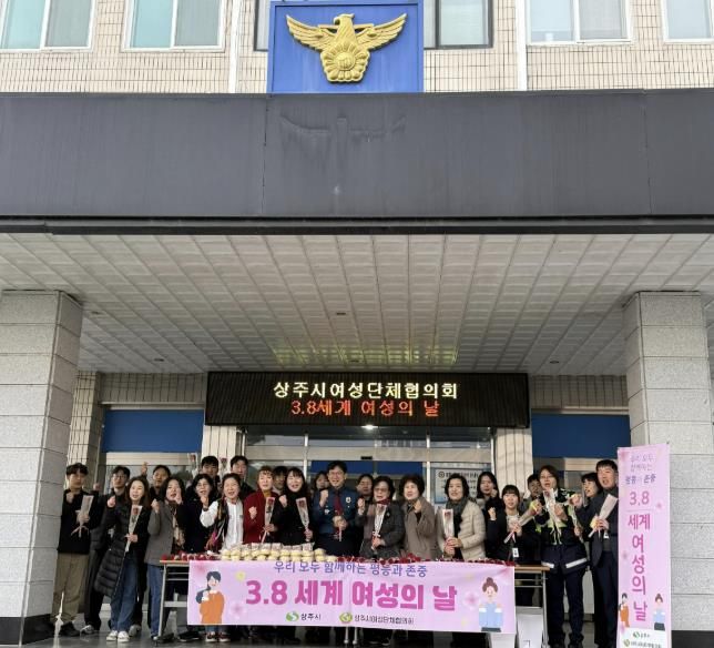 한방통신사 신유철기자 기자 | 상주시여성단체협의회와 상주경찰서는 3월 6일 상주경찰서 1층에서 세계 여성의 날(3월 8일)을 기념하여 빵(참정권)과 장미꽃(노동조건 개선)을 전달하는 캠페인을 진행했다.