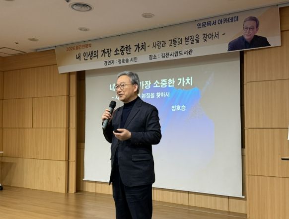 이어 3월 7일 진행된 정호승 시인의 강연〈내 인생의 가장 소중한 가치〉에서는 ‘사랑’과 ‘고통’이라는 삶의 핵심 주제를 통해 참여자들의 깊은 성찰을 이끌었다. 정호승 시인은 ‘고통’을 피해야 할 대상이 아니라 ‘삶을 이해하게 만드는 통로’로 바라보며, ‘사랑이 단지 감정에 머무르지 않고 삶의 선택과 태도를 형성한다’라는 메시지를 전했다.