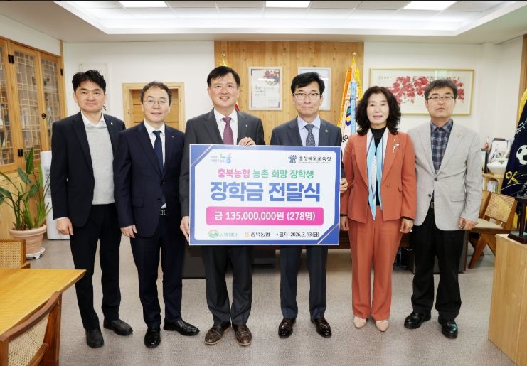 이용선 충북농협 본부장은 “이번 장학금이 학생들이 자신의 꿈을 향해 나아가는 데 작은 보탬이 되기를 바란다.”라며 “앞으로도 농촌지역 학생들을 위한 장학사업을 지속적으로 추진하겠다.”라고 말했다.