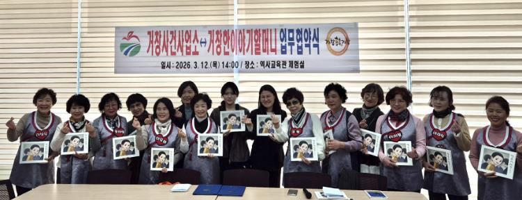 협약식에는 거창한 이야기 할머니 12명과 거창사건사업소장, 인구교육과장, 그리고 거창사건 동화 '땅속의 시간'을 집필한 양휘모 작가 등이 참석했다.