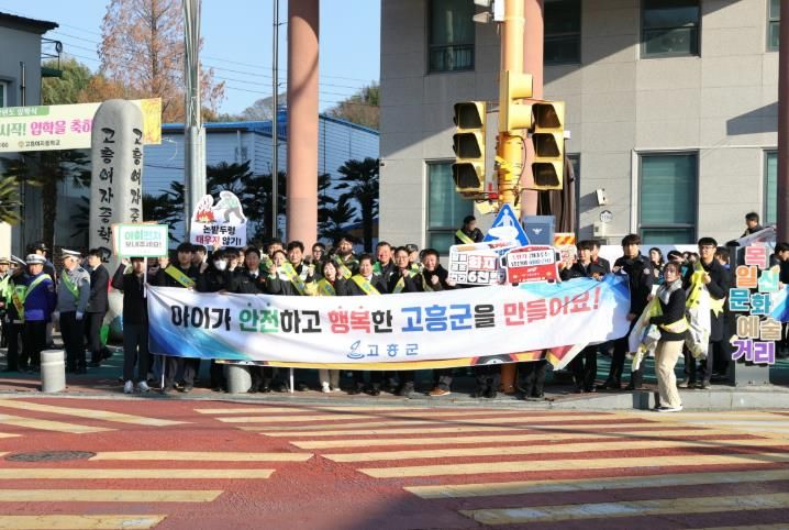 이번 캠페인은 어린이 등교 시간대에 맞춰 진행됐으며, 고흥군과 고흥경찰서, 고흥소방서, 고흥교육지원청, 자율방범대, 모범운전자회 등 100여 명이 참여해 민관 합동으로 진행됐다.