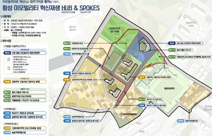 횡성군이 추진 중인 이번 계획은 횡성읍 읍하리 일원의 옛 군부대 부지 개발을 중심으로 하는 도시경제기반형 도시재생활성화계획으로, 사업면적은 124,671㎡이며 이 중 혁신지구 면적은 26,697㎡다.