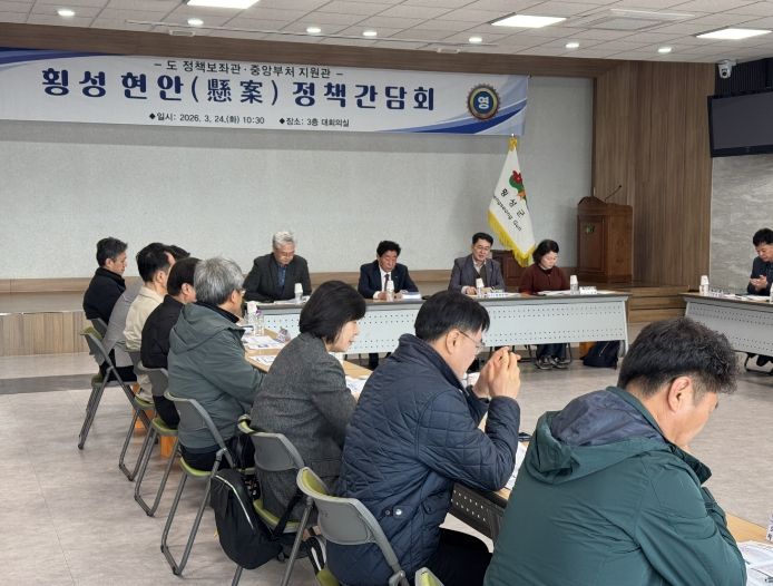 한방통신사 신유철기자 기자 | 강원특별자치도는 3월 24일 오전 10시 30분, 횡성군청 대회의실에서 도 경제정책보좌관·중앙부처지원관과 함께 횡성군 정책간담회를 개최했다.