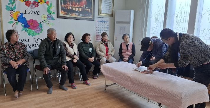 현장에서는 구산한의원 의료진이 침 시술 등 한방 진료를 진행하며 어르신들의 통증 완화와 건강 상태를 점검했다.