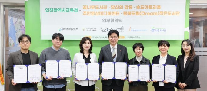 한방통신사 신유철기자 기자 | 인천광역시교육청은 31일 꿈나무도서관 등 민간·공공 5개 기관과 ‘읽걷쓰 문화 확산을 위한 업무협약’을 체결했다.
