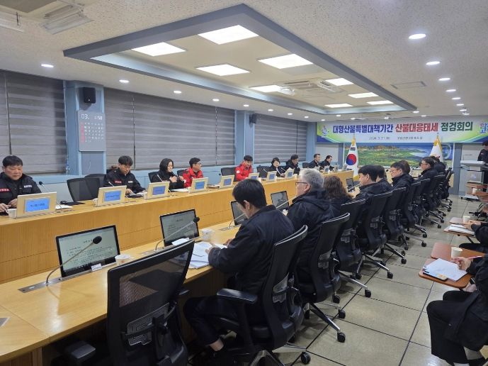 산불감시 가용인력 708명(공무원 341, 재난대응단 77, 감시원 162, 마을대표 128), 15개 단체 등 총동원하여 감시활동을 강화했으며, 산불 진화 헬기, 진화 차량, 지상진화장비 등 주요 장비의 가동 상태를 일제히 점검하고, 소방·경찰·군부대 등 유관기관과의 공조 체계를 다시 한번 확인하여 빈틈없는 초동 진화 태세를 구축했다.