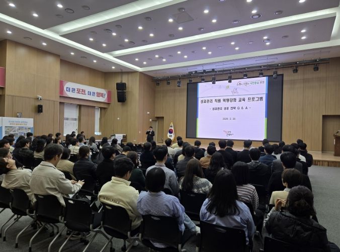 교육은 성과관리팀장이 ‘2026년 통합성과관리(BSC) 운영 계획’을 설명하며 성과관리 체계의 운영 방향과 평가 절차, 주요 개선사항 등을 공유했다.