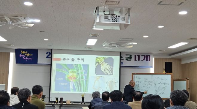 개강식에서는 오리엔테이션을 통해 교육과정과 향후 운영계획을 안내하고, 춘란의 역사와 품종, 생육환경 등 기본 이론 강의가 이어졌다.