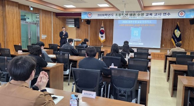 이번 연수는 체육학 체육 전공 박사 강사 초빙으로'생존 수영 실습 안전 지도'라는 강의 제목으로 담당 교사들의 수영 교육의 필수인 안전에 관해 심도 있게 교육이 진행됐다.