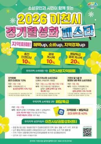한방통신사 신유철기자 기자 | 이천시는 침체된 지역경제에 활력을 불어넣기 위해 2026년 4월 3일부터 ‘2026 이천시 경기 활성화 페스타’를 본격 추진한다고 밝혔다.