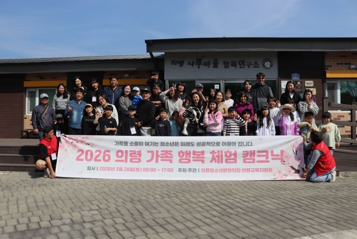 한방통신사 신유철기자 기자 | 의령청소년문화의집은 지난달 28일 관내 초·중학생 12가족(총 42명)을 대상으로 한 '2026 의령 가족 행복 체험 캠크닉(봄)'을 성황리에 마쳤다고 밝혔다.