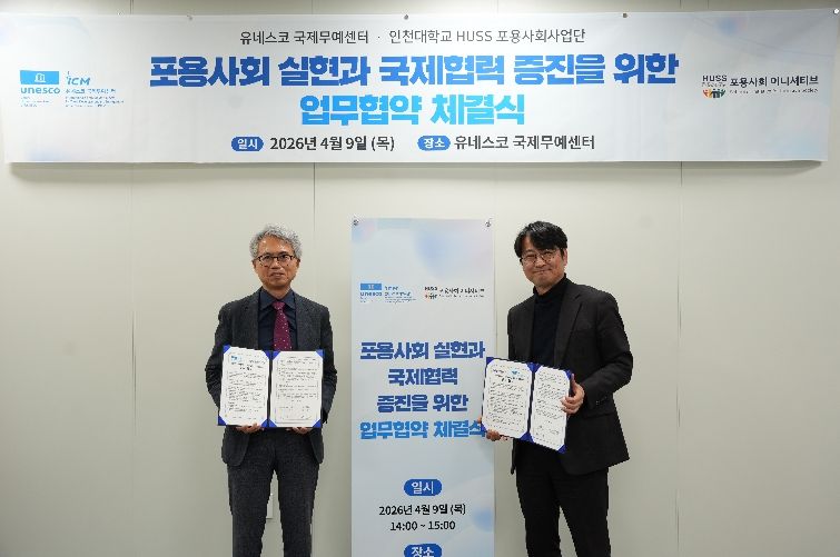 한방통신사 권영분기자 기자 | 유네스코 국제무예센터(ICM, 사무총장 김규직)는 4월 9일 충북 충주시 소재 유네스코 국제무예센터에서 인천대학교 HUSS 포용사회사업단(총괄단장 옥우석)과 업무협약(MOU)을 체결했다.