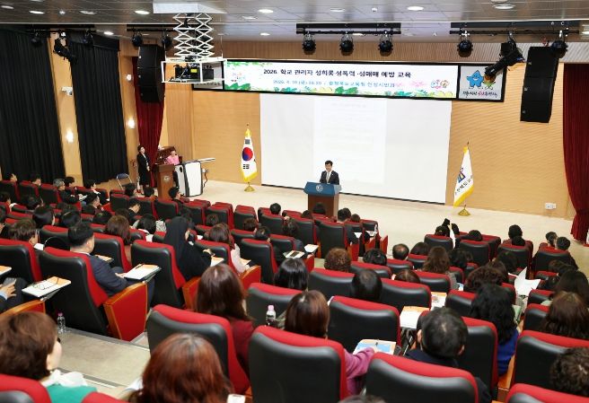 한방통신사 권영분기자 기자 | 충청북도교육청은 10일, 충북교육청 사랑관 세미나실에서 청주권 교감 180명과 중부권 교장 100명 등 총 280여 명을 대상으로 '2026년 학교 관리자 성희롱・성폭력・성매매 예방 교육'을 실시했다.