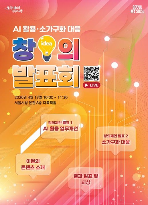 서울시는 이러한 변화에 대응하기 위해 AI를 활용한 행정혁신부터 1·2인 가구 증가에 대응하는 생활밀착형 정책까지 직원들의 다양한 제안을 공유하는 ‘2026년도 첫 창의 발표회’를 17일 오전 10시, 서울시청 다목적홀(8층)에서 개최했다.