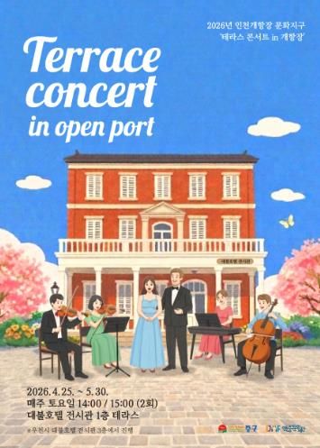 한방통신사 신유철기자 기자 | (재)인천중구문화재단은 오는 4월 25일부터 5월 30일까지 매주 토요일마다 인천 개항장 문화지구 내 대불호텔 전시관 테라스에서 '테라스 콘서트 in 개항장'’을 운영한다고 밝혔다.