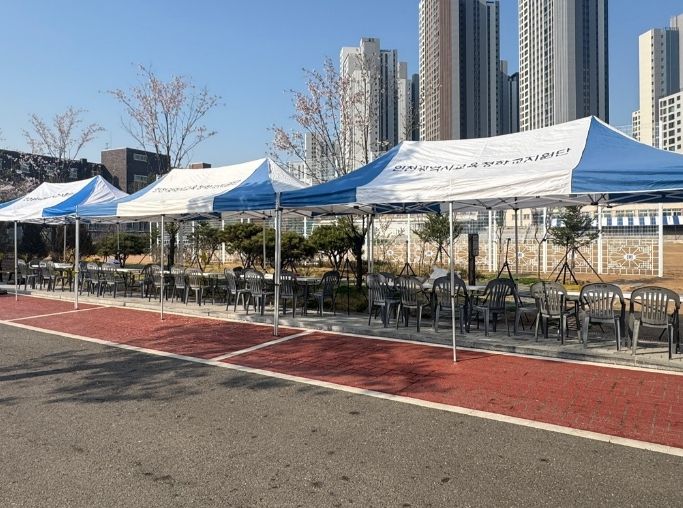 지원 물품은 현장의 수요가 높은 ▲선거용 기표대 ▲캐노피 천막 ▲에어바운스 ▲행사용 의자 등 총 13종으로, 대여를 희망하는 기관은 인천시교육청 누리집에서 대여일 15일 전부터 7일 전까지 온라인으로 신청하면 된다.