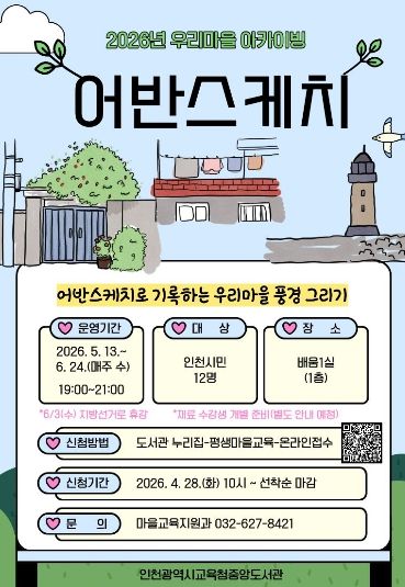 한방통신사 신유철기자 기자 | 인천광역시교육청중앙도서관은 2026년도 마을교육 아카이빙 사업의 일환으로, 5월 13일부터 ‘우리 마을 아카이빙, 어반스케치’ 프로그램을 운영한다.