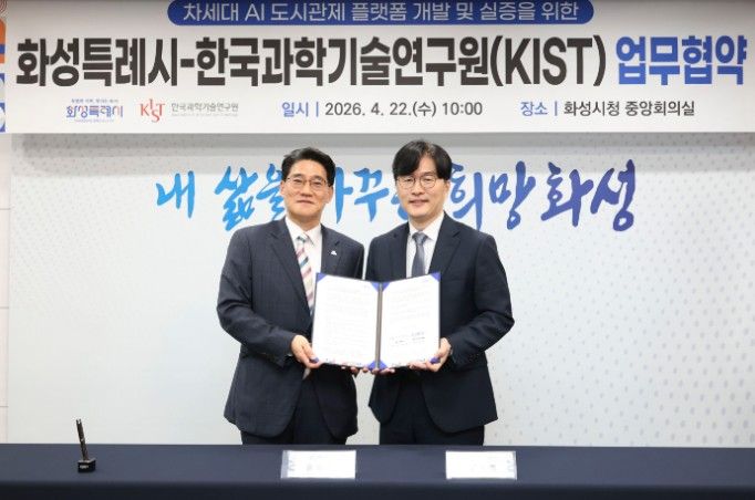 한방통신사 신유철기자 기자 | 화성특례시는 도시상태정의 기반의 AI 도시관제 체계로의 전환에 본격 착수했다. 시는 22일 한국과학기술연구원(KIST)과 ‘차세대 AI 도시관제 플랫폼 개발 및 실증’을 위한 업무협약(MOU)을 체결했다.