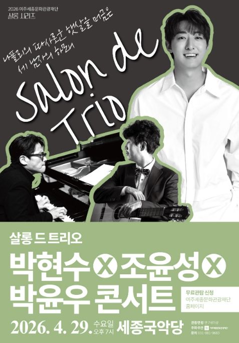 한방통신사 신유철기자 기자 | 여주세종문화관광재단이 오는 29일, 문화가 있는 날을 맞아 2026년 특별기획 살롱 시리즈의 세 번째 무대 '살롱 드 트리오 박현수X조윤성X박윤우 콘서트'를 세종국악당에서 개최한다.