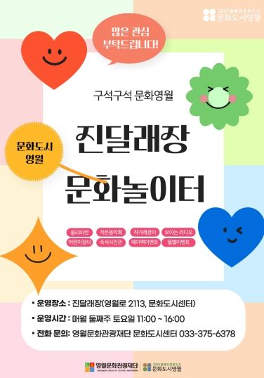 한방통신사 양호선기자 기자 | (재)영월문화관광재단은 오는 8월 30일까지 ‘진달래장 문화놀이터’ 참여자를 수시 모집한다고 밝혔다.