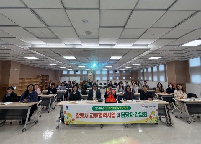 한방통신사 신유철기자 기자 | (재)이천시자원봉사센터는 4월 22일, 자원봉사 활성화를 위한 ‘2026년 상반기 활동처 관리자 교류협력’ 간담회를 개최했다. 이날 간담회에는 관내 활동처 관리자 50여 명이 참석해 자원봉사 운영 역량 강화를 위한 교육과 소통의 시간을 가졌다.