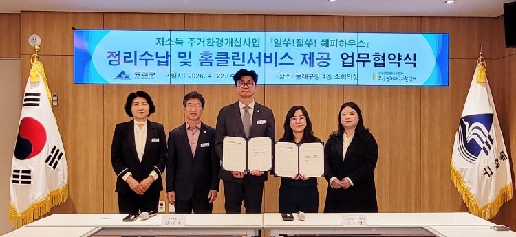 한방통신사 신유철기자 기자 | 부산 동래구는 지난 22일 부산동래지역자활센터(센터장 김희영)와 ‘얼쑤절쑤 해피하우스’ 저소득 주거환경개선사업의 일환으로 정리 수납 및 홈클린 서비스 제공 업무 협약을 체결했다고 밝혔다.