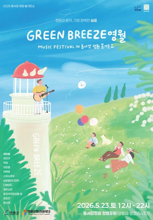 영월군이 2026 동서강정원 봄가든쇼 뮤직 페스티벌 ‘GREEN BREEZE 영월’의 최종 아티스트 라인업을 공개했다.