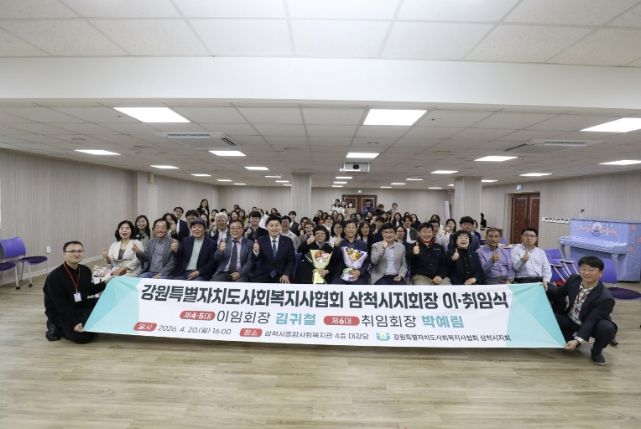 한방통신사 양호선기자 기자 | 강원특별자치도사회복지사협회 삼척시지회는 4월 20일 오후 4시, 삼척시종합사회복지관에서 제5·6대 지회장 이취임식을 개최했다.