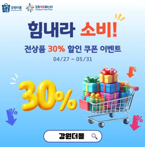 주요 내용으로는 강원더몰 전 상품에 적용 가능한 ‘30% 할인쿠폰 이벤트’가 진행된다.