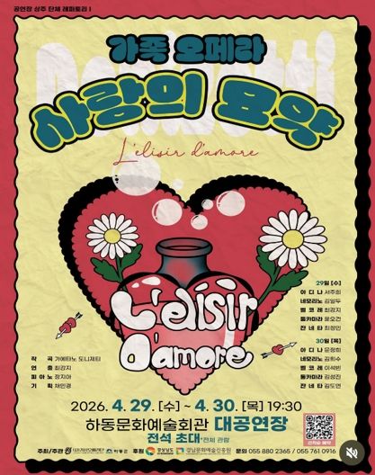 한방통신사 신유철기자 기자 | 하동군이 오는 4월 29일·30일 오후 7시 30분, 하동문화예술회관에서 사단법인 경상오페라단의 가족오페라 ‘사랑의 묘약’을 선보인다.