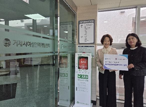 한방통신사 신유철기자 기자 | 거제시 여성인력개발센터가 시민들의 안전을 위해 센터 로비에 자동심장충격기(AED)를 설치하며 지역사회 응급 의료 안전망 강화에 나섰다.
