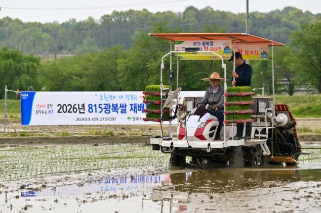 한방통신사 신유철기자 기자 | 영주시와 안정농협은 4월 27일 안정면 오계리 최이한 농가의 논에서 ‘2026년 8·15광복쌀 재배단지 첫 모내기 행사’를 개최했다고 밝혔다.